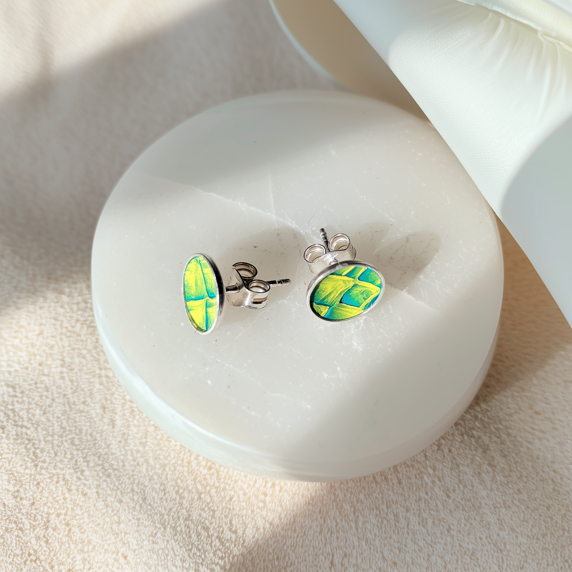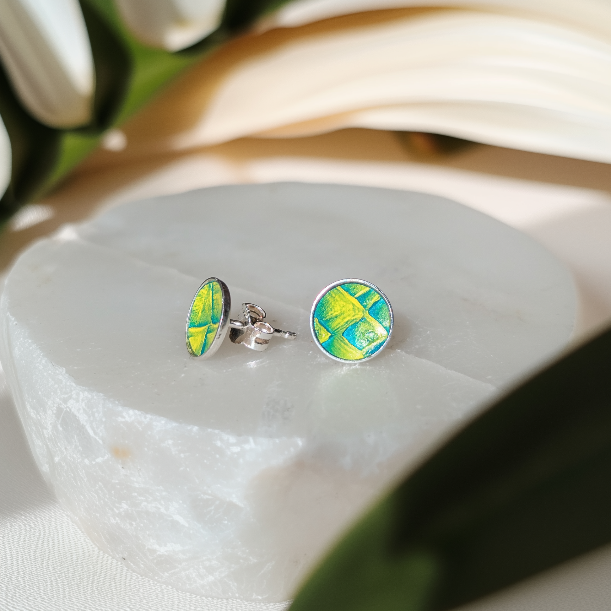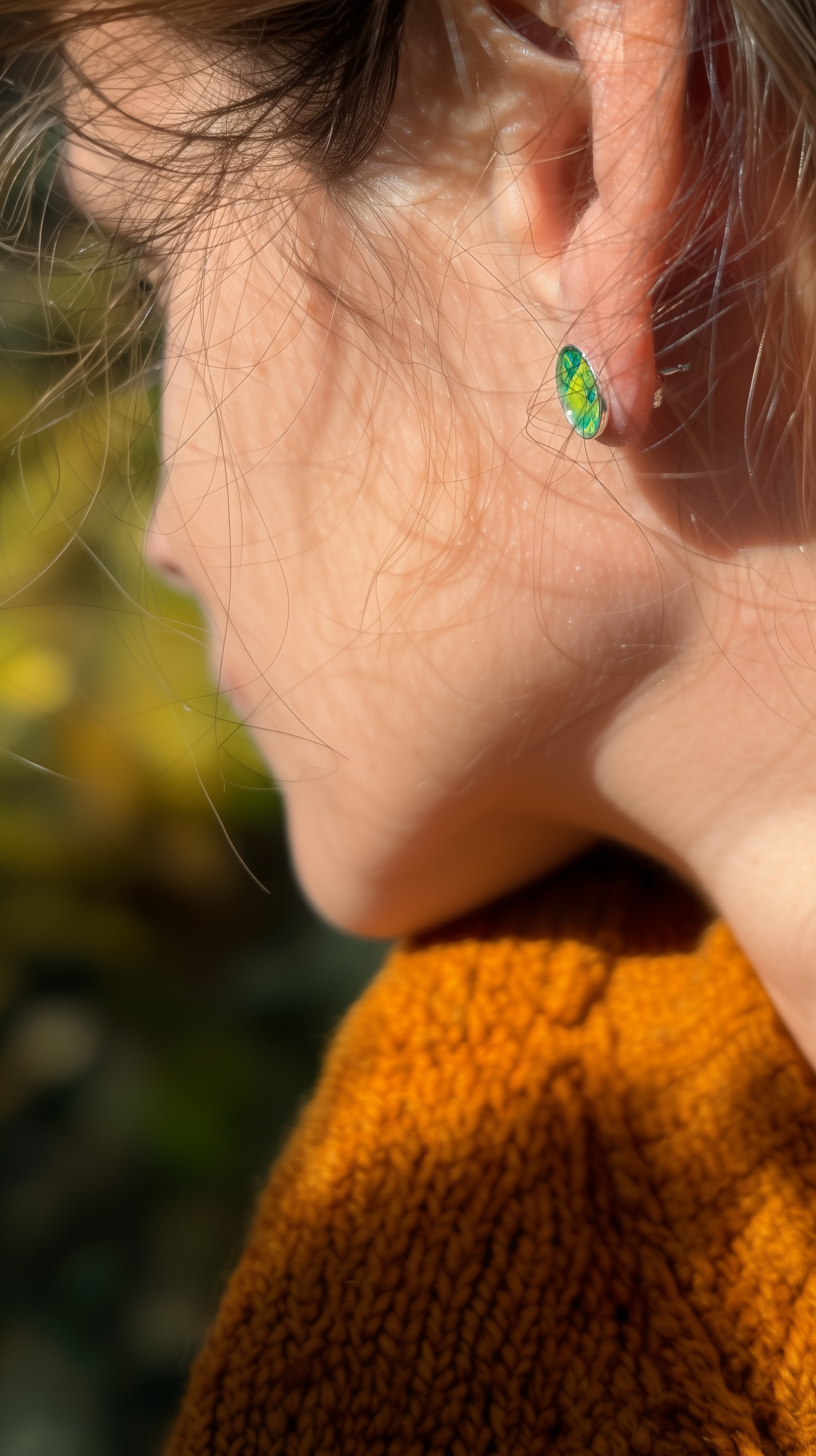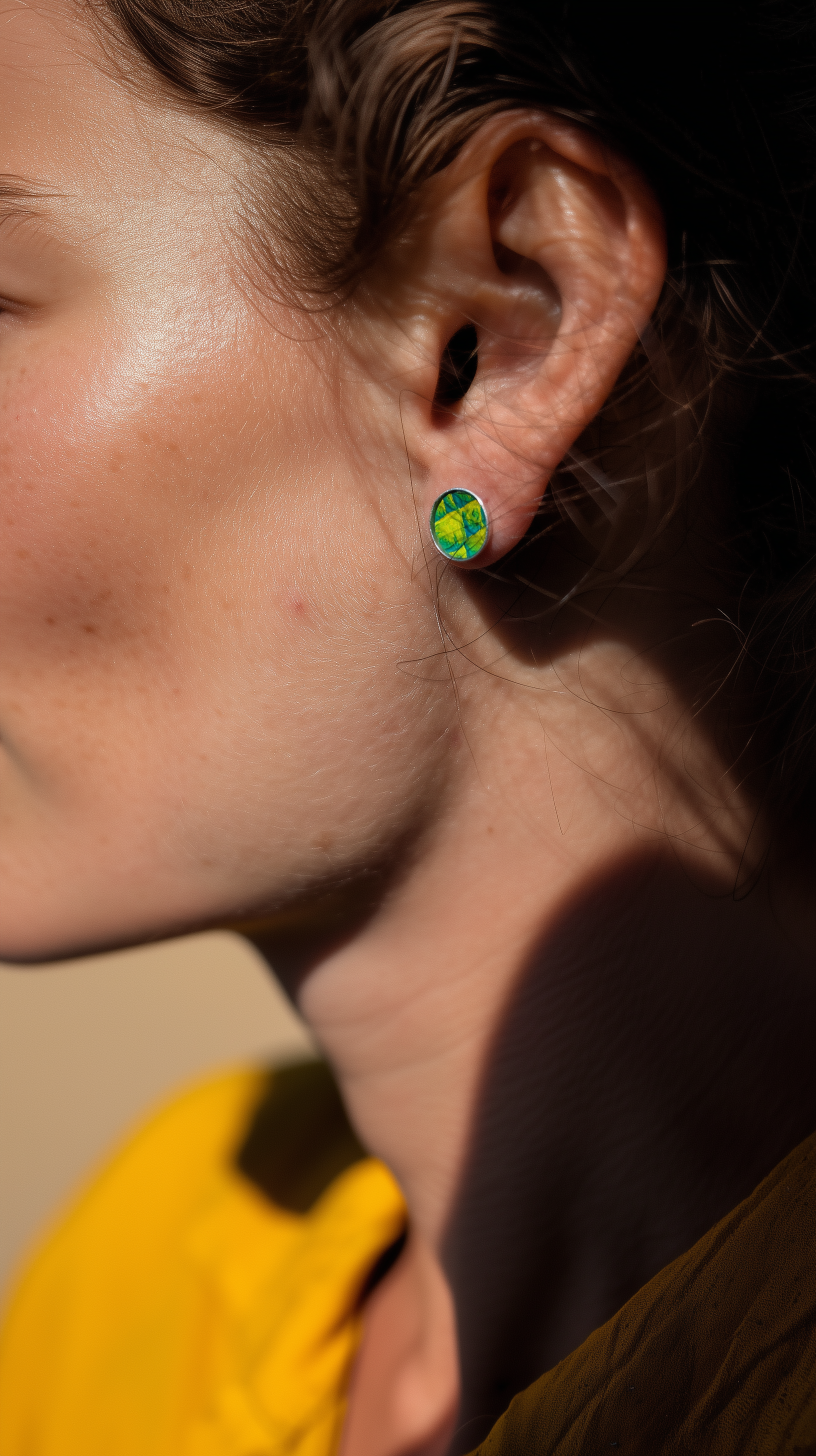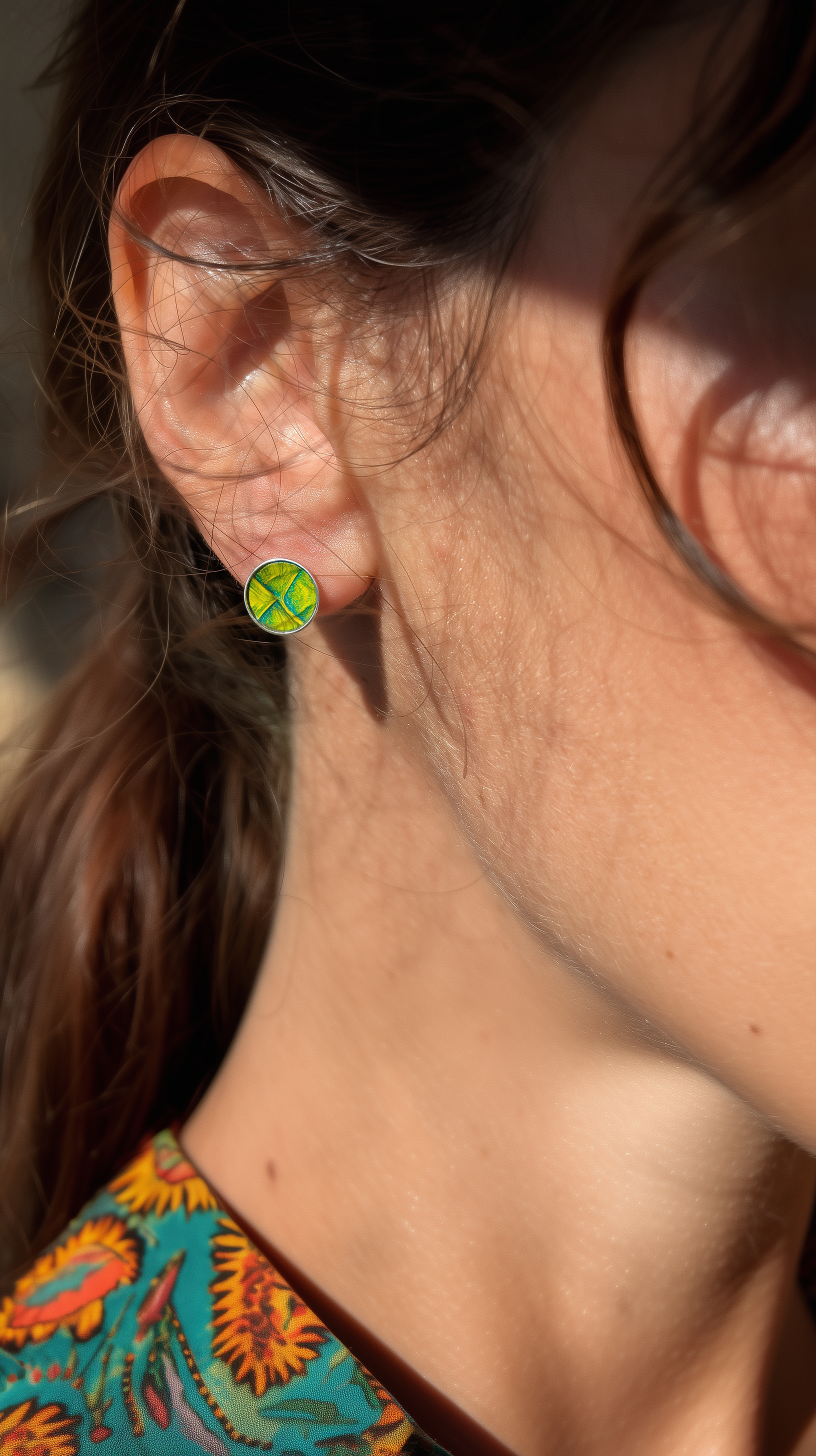 Chaque paire révèle des nuances vivantes, oscillant entre éclats verts et dorés, rappelant la lumière mouvante de l’eau sur les rivières bretonnes.