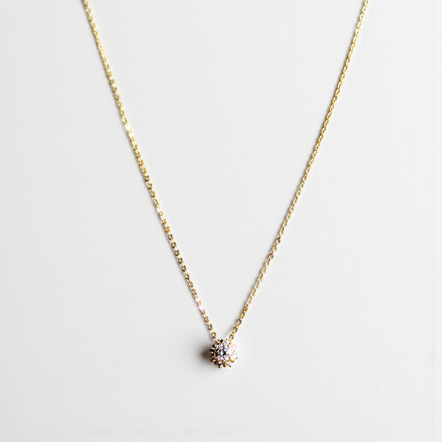 Le collier Eclat de Lune reprend le motif solaire et minéral des boucles d’oreilles de la même collection. Son pendentif rond orné de zircon cubique capte la lumière avec une intensité douce et cristalline. Une pièce à la fois délicate et lumineuse, pensée pour révéler la beauté naturelle de chaque port de tête.